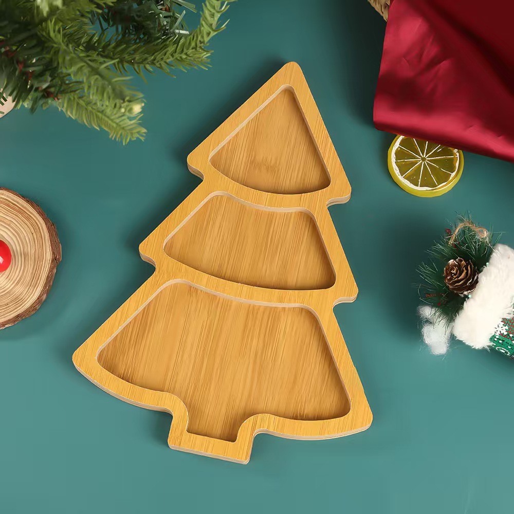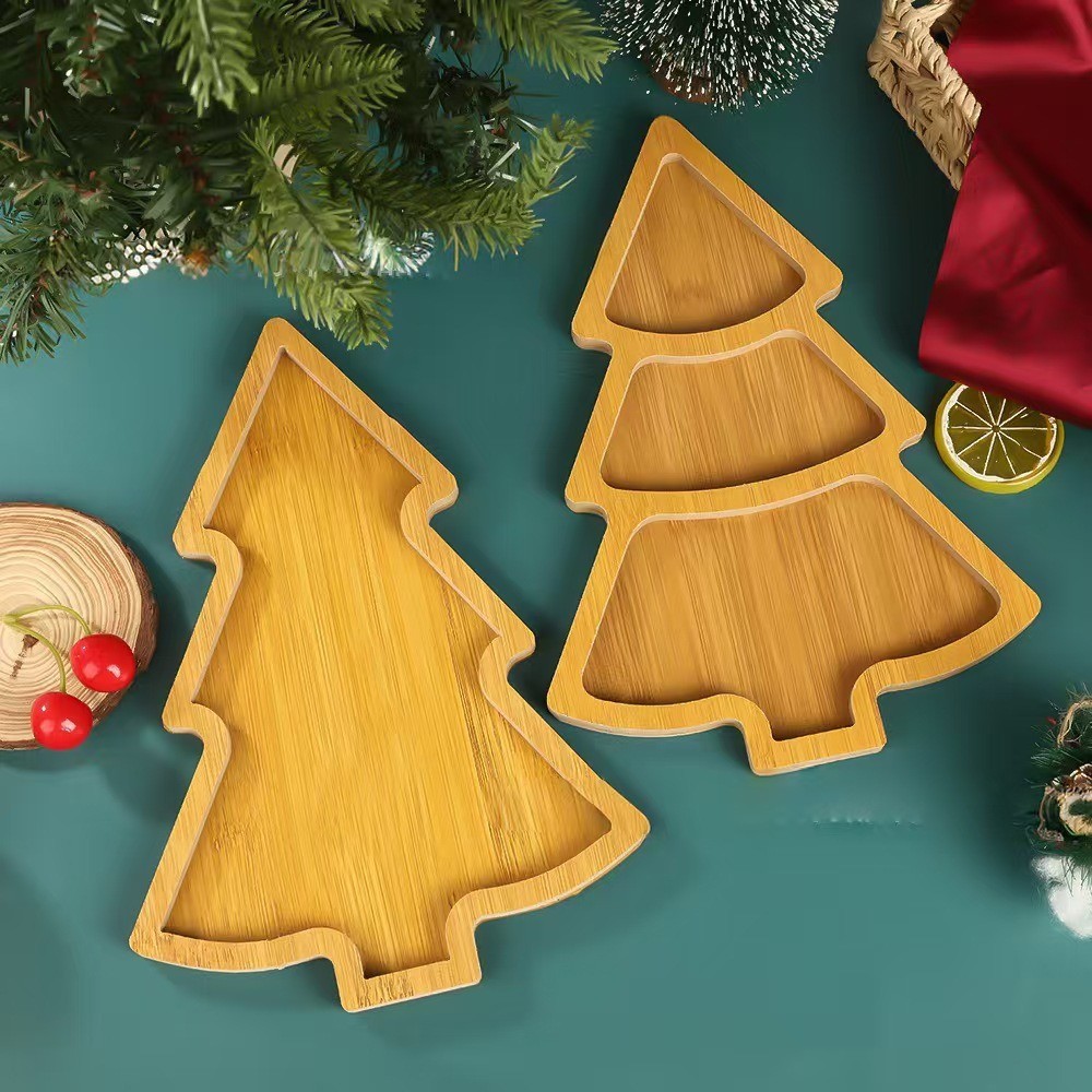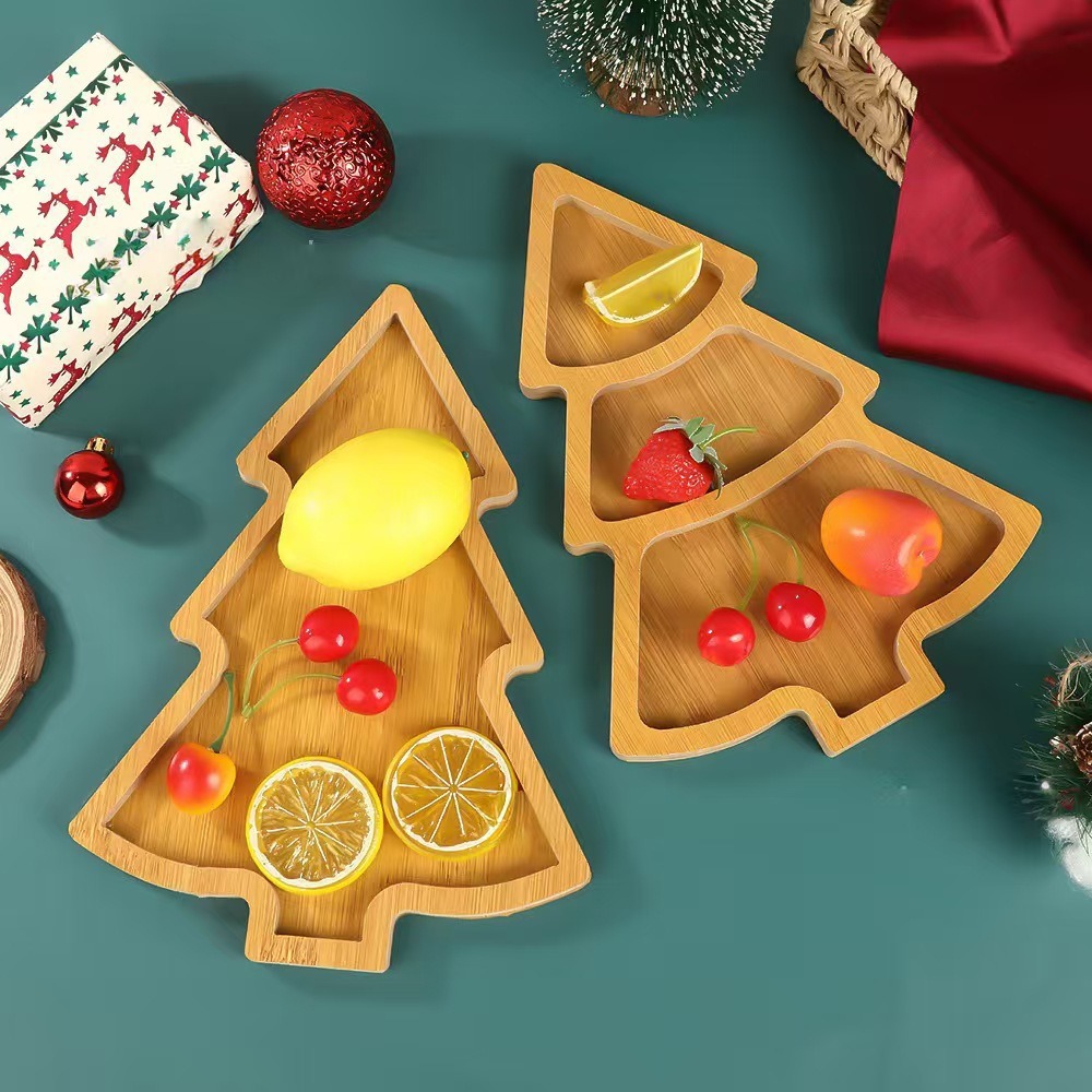 跨境竹木托盘圣诞餐具干果零食多格木盘家用水果盘子餐厅快餐盘