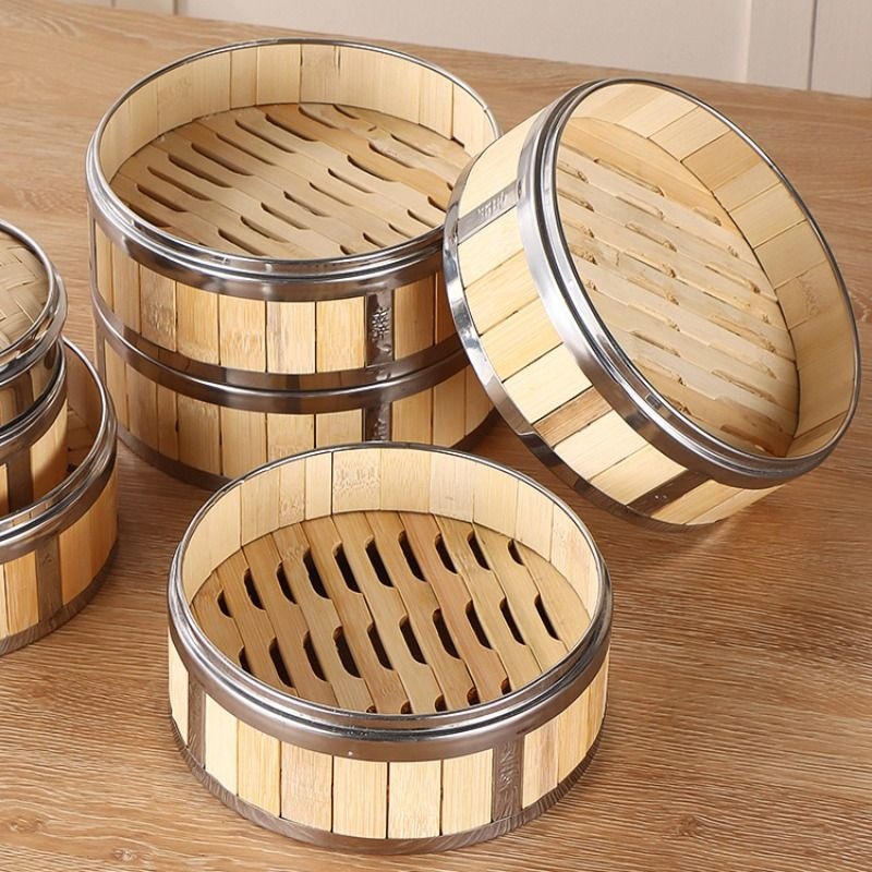 Бытовая пароварка для риса, маленькая пароварка из бамбука для булочек, полка для пароварки из нержавеющей стали, пароварка для булочек, мяса на пару и сковорода