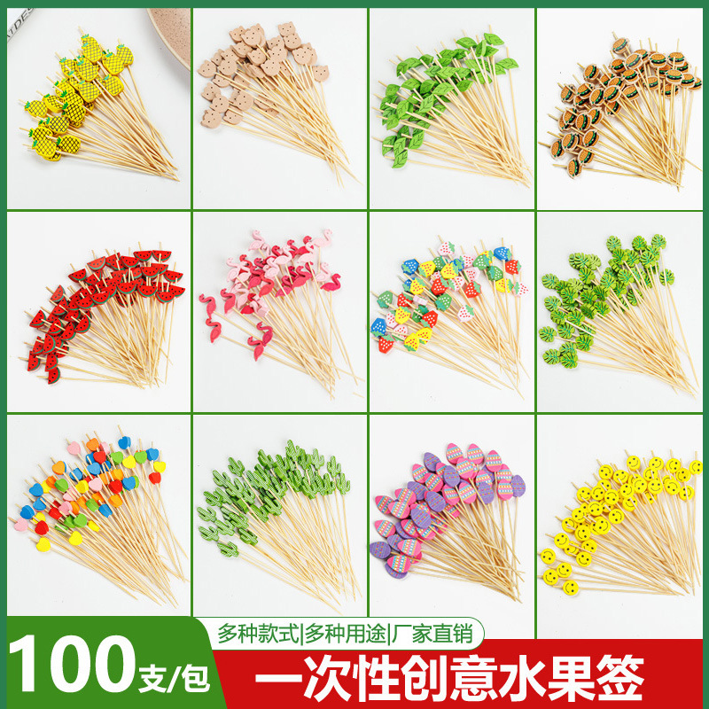 Disposable Fruit Sign Bamboo Sign Flower Sign Fruit Fork Creative Art Toothpick Cocktail Sign Sandwich Sign Fruit Insert